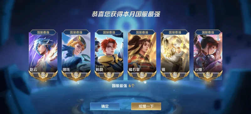 皖皖6大国标:赵云、哪吒、杨戬、橘右京、镜、云缨;